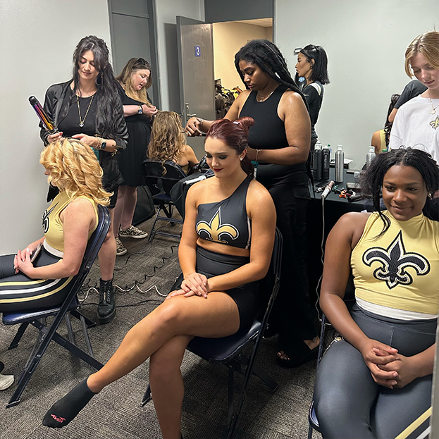 “We have one team that loves doing photo shoots, so we have a studio where they can shoot,” Perryman says. “We also work with the Saints cheerleaders and go to games. Some team members love doing that.”