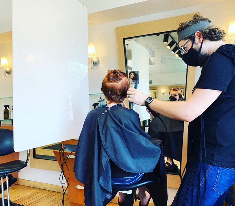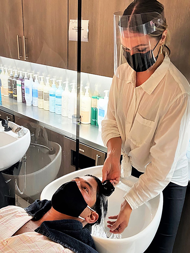 Having just 50 percent of the staff working the first weeks of reopening was helpful as the salon’s management team coped with new protocols.